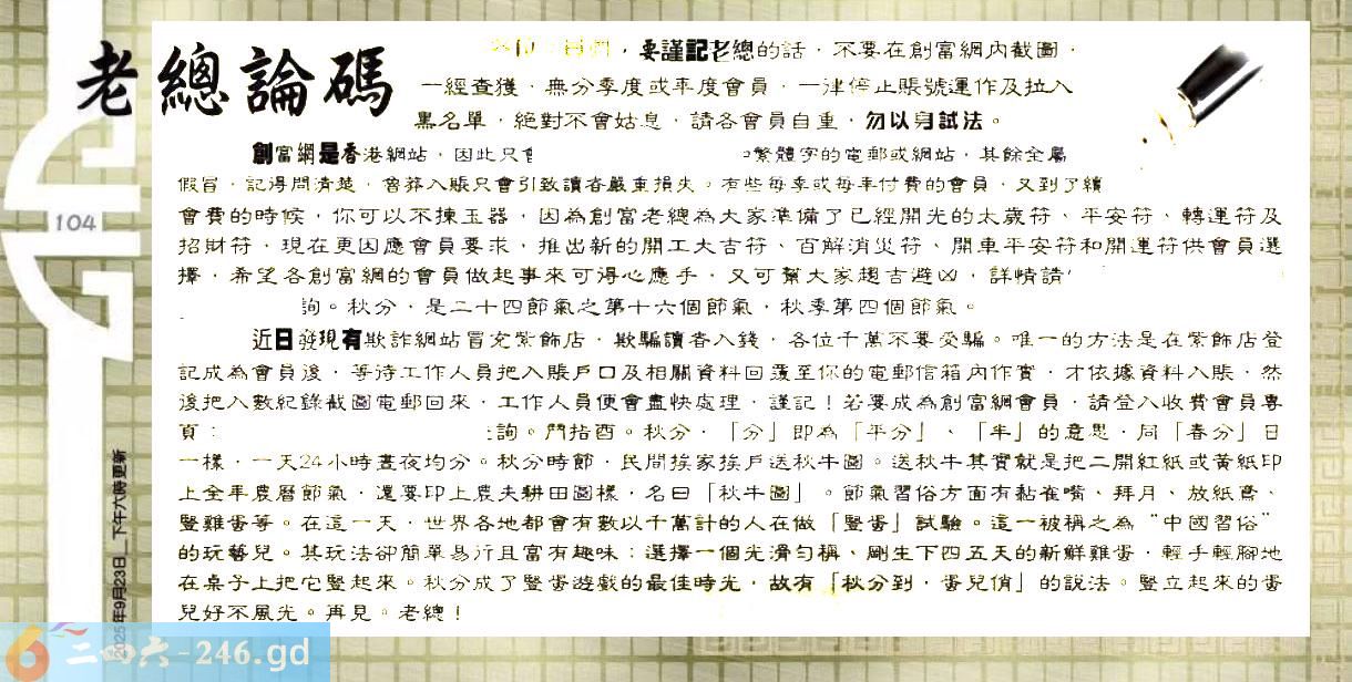 六合彩104期:六合皇金句/老总论码/萧公子/林大师/五行夺码/老总信箱截图