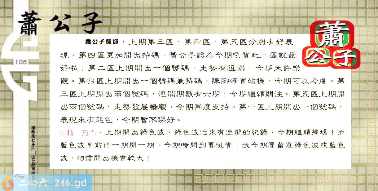 六合彩【105期】内部来料(有边无边发表区)已公开】
