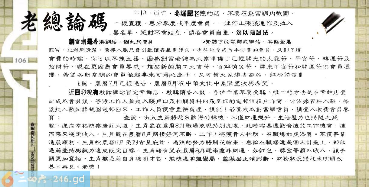 六合彩106期:六合皇金句/老总论码/萧公子/林大师/五行夺码/老总信箱截图