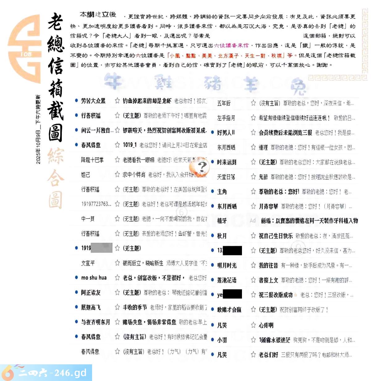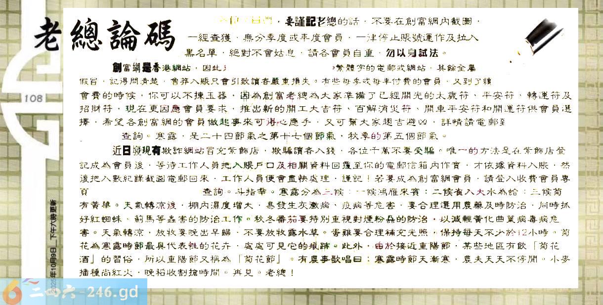六合彩108期:六合皇金句/老总论码/萧公子/林大师/五行夺码/老总信箱截图