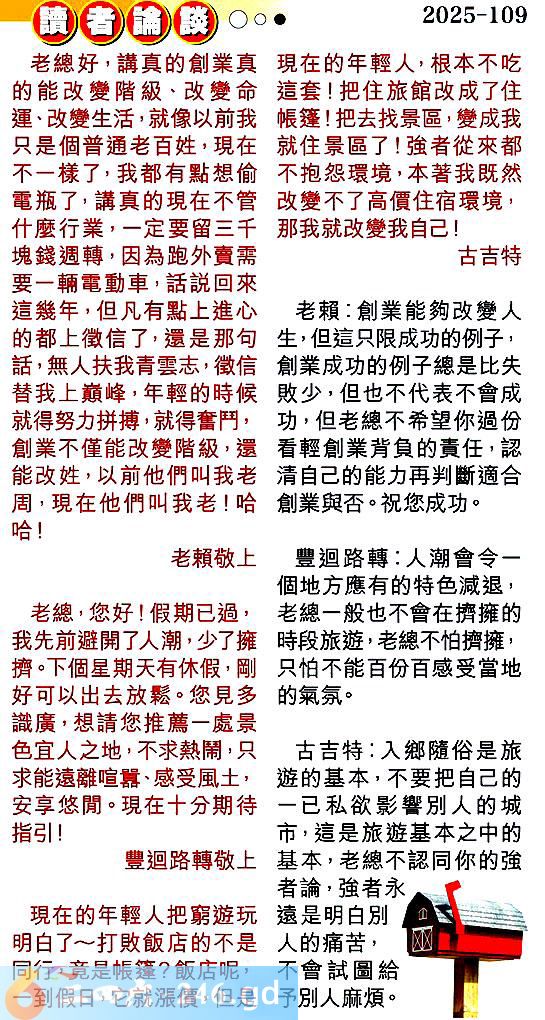 〖古吉特〗:入鄉隨俗是旅遊的基本,不要把自己的一已私欲影響別人的城市,這是旅遊基本之中的基本,老總不認同你的強者論,強者永遠是明白別人的痛苦,不會試圖給予別人麻煩。