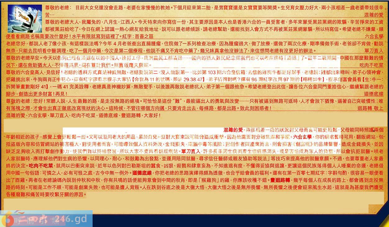 【2】.尊敬的老總大人、我屬兔的,八月生,江西人。今天特來向你寫信一份,其主要原因是本人也是香港六合的一員受害者,多年來蒙受黑莊黑網的欺騙、辛苦掙來的工資都被黑莊給吃了、今日在網上認識一熱心網友給我地址,說可以跟老總傾訴,請老總幫助,還能找到入會方式不再被黑莊黑網蒙騙,所以特寫信。希望老總不嫌棄,順便看看網路名稱需要改什麼好!水平有限就寫到這裡了。紅字:首善之區六合玄學