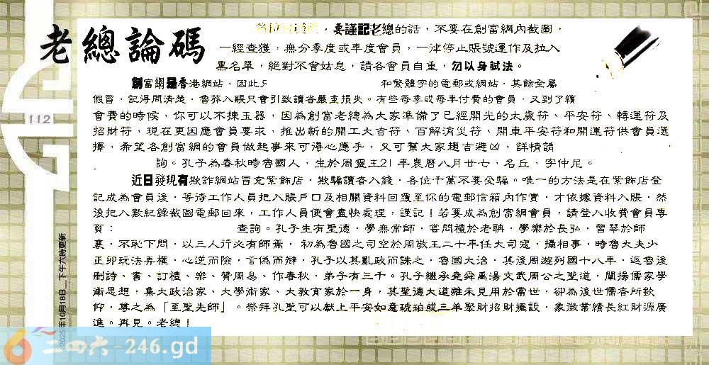 六合彩112期:六合皇金句/老总论码/萧公子/林大师/五行夺码/老总信箱截图