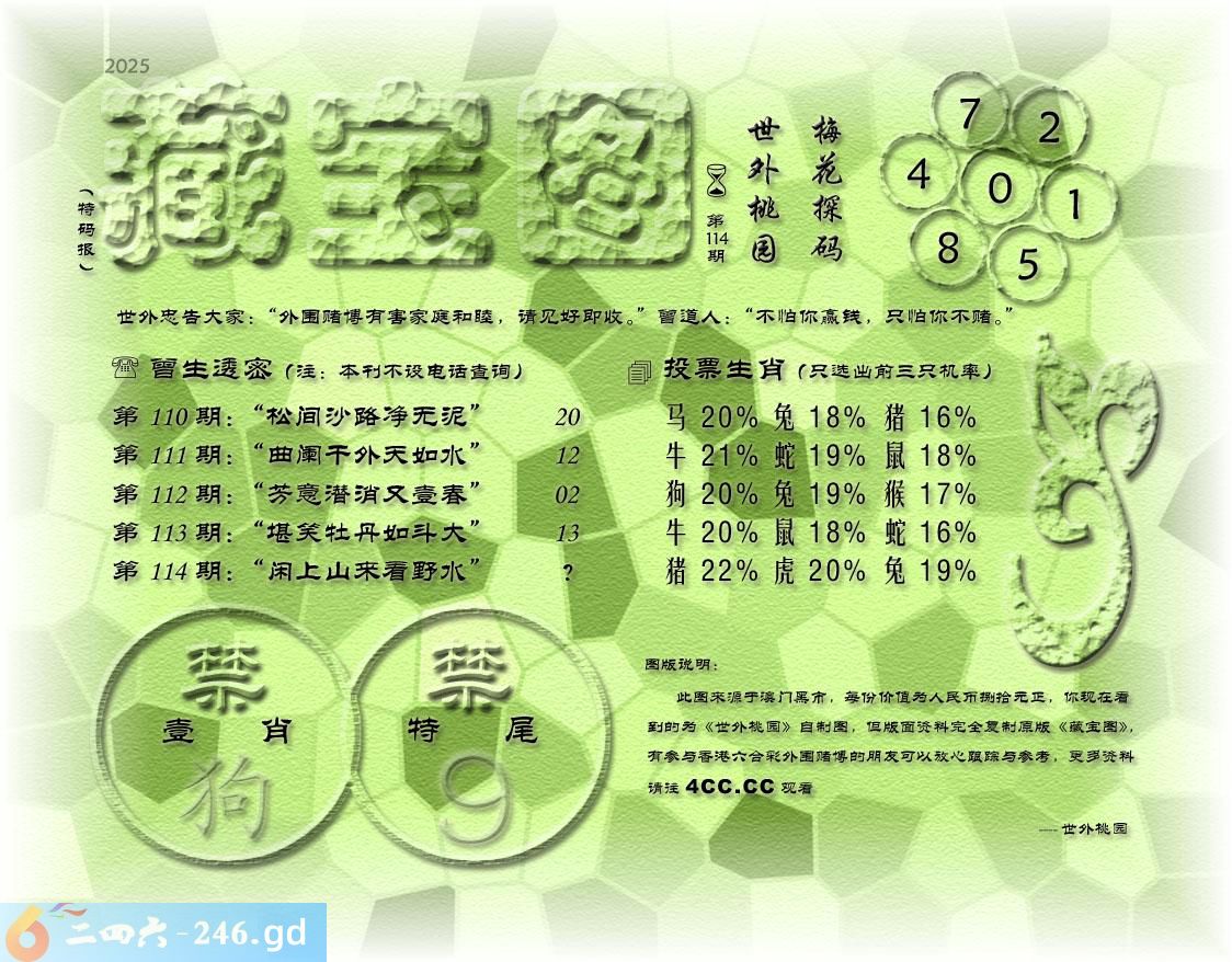 114期藏寶圖 新:不驾蒲轮左禹汤 老:闲上山来看野水 禁:狗禁:9尾玄機字:《沸》