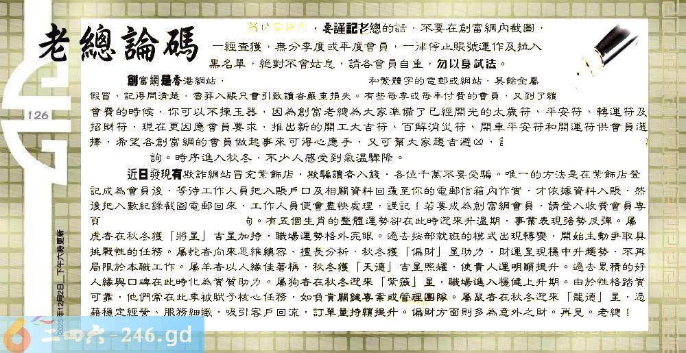 六合彩126期:六合皇金句/老总论码/萧公子/林大师/五行夺码/老总信箱截图