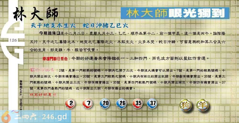 六合彩【126期】内部来料(一码一肖发表区)已公开】