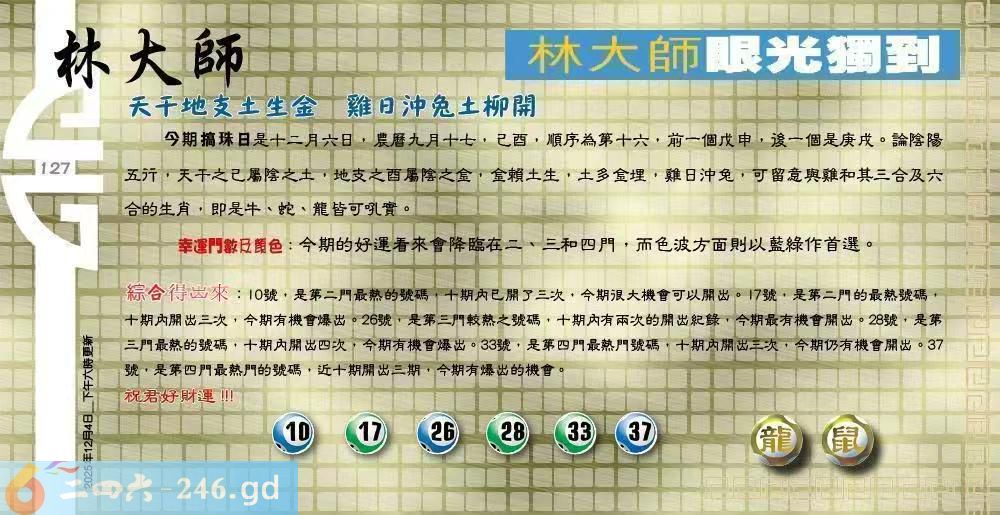 六合彩127期:更新100%〓2025乙已年香港掛牌之全篇(开奖日版)