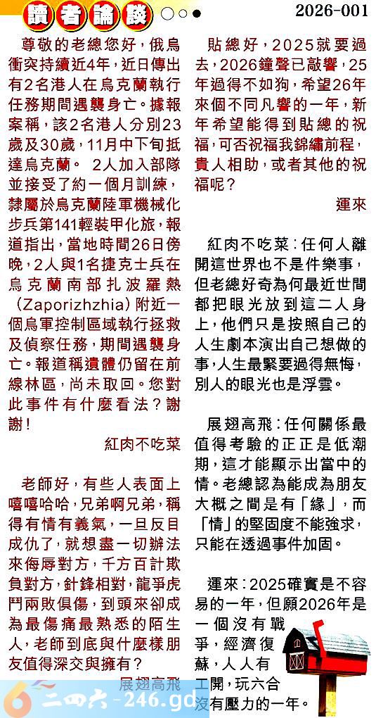 〖運來〗:2025確實是不容易的一年,但願2026年是一個沒有戰爭,經濟復蘇,人人有工開,玩六合沒有壓力的一年。