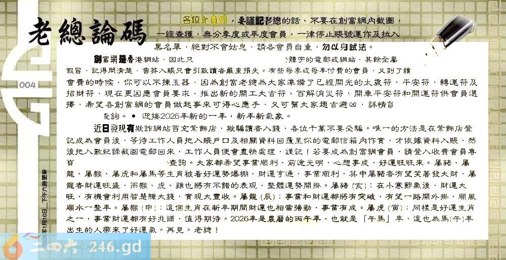 六合彩004期:六合皇金句/老总论码/萧公子/林大师/五行夺码/老总信箱截图