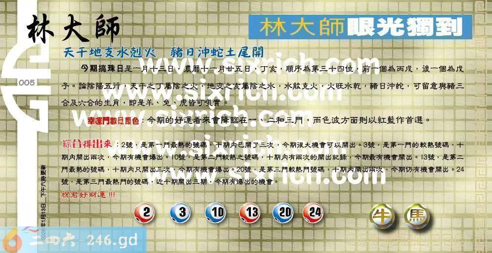 六合彩005期:更新100%〓2026乙已年香港掛牌之全篇(图库版)