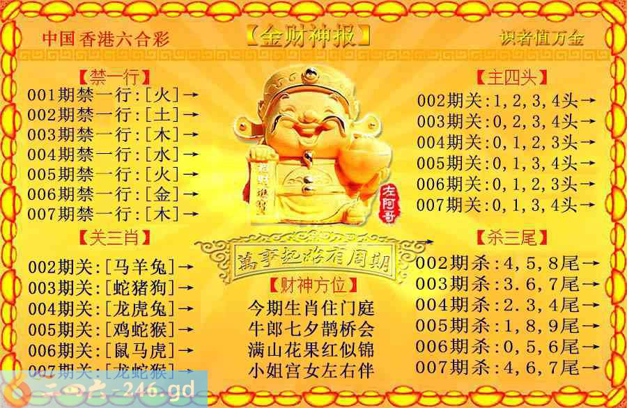 六合彩007期:金色财神