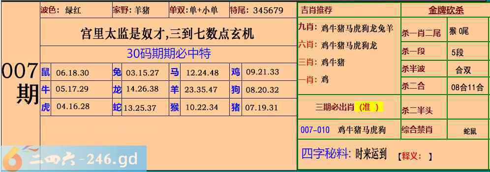 六合彩007期:30码期期特