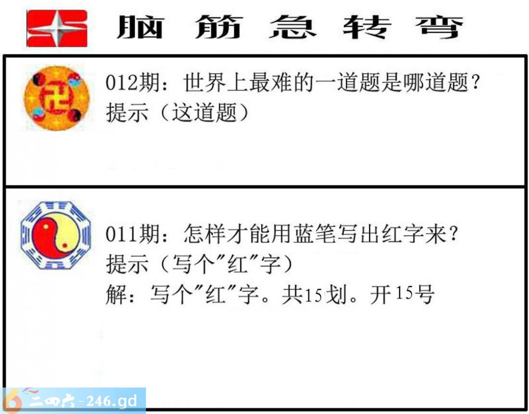 六合彩012期:脑筋急转弯