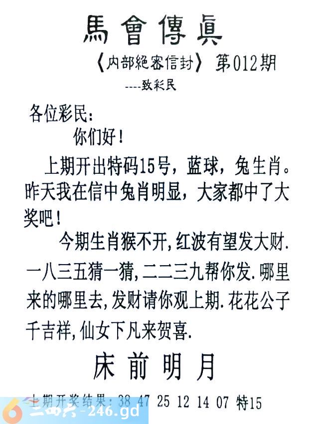 六合彩012期:首发推荐:≮馬會傳眞≯→(香港正版)