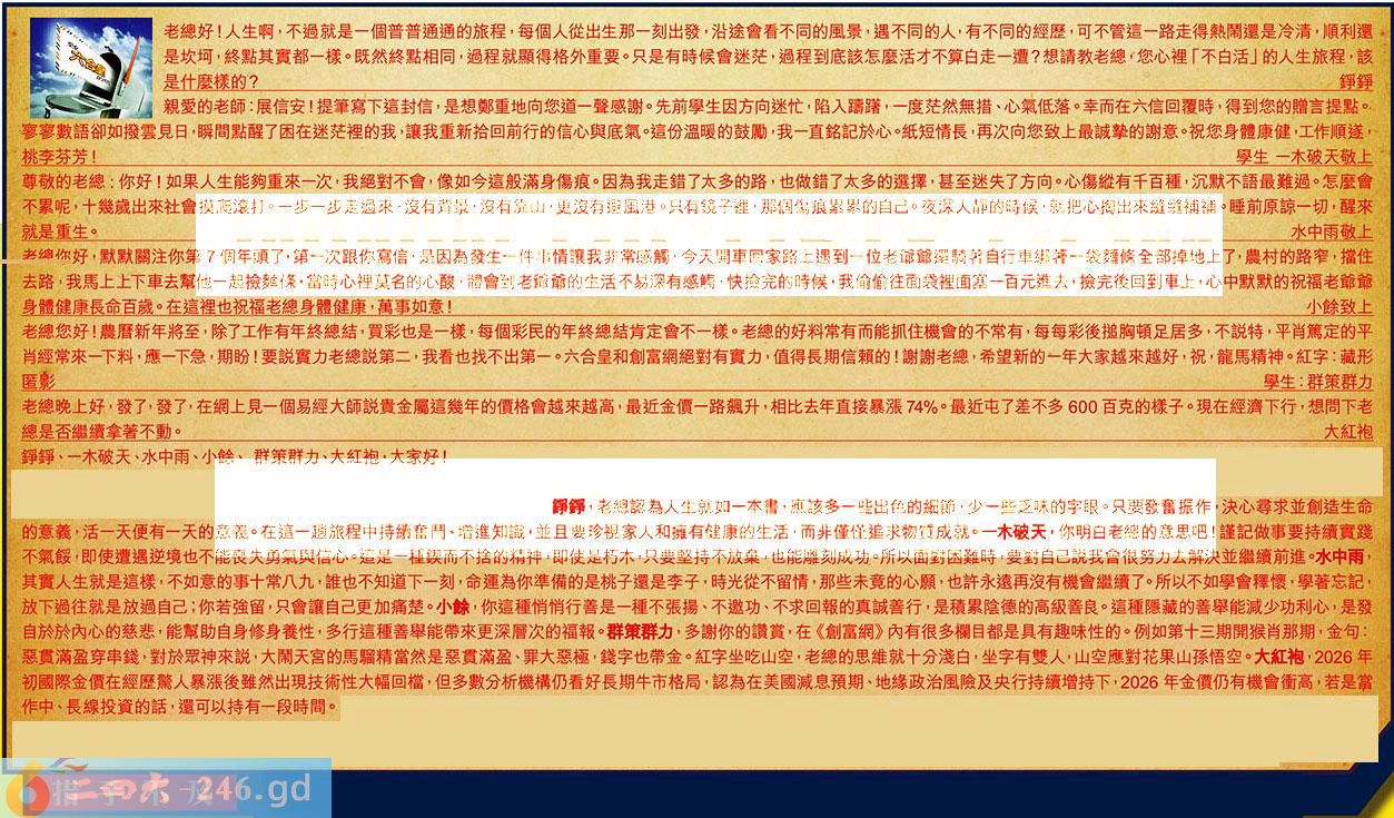 【5】.老總您好!農暦新年將至,除了工作有年終總結,買彩也是一樣,每個彩民的年終總結肯定會不一樣。老總的好料常有而能抓住機會的不常有,每每彩後槌胸頓足居多,不説特,平肖篤定的平肖經常來一下料,應一下急,期盼!要説實力老總説第二,我看也找不出第一。六合皇和創富網絕對有實力,值得長期信賴的!謝謝老總,希望新的一年大家越來越好,祝,龍馬精神。紅字:藏形匿影學生:群策群力