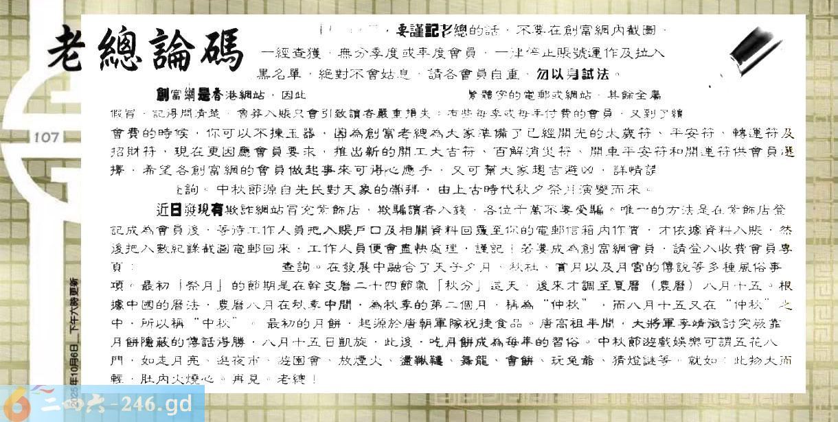 六合彩107期:六合皇金句/老总论码/萧公子/林大师/五行夺码/老总信箱截图