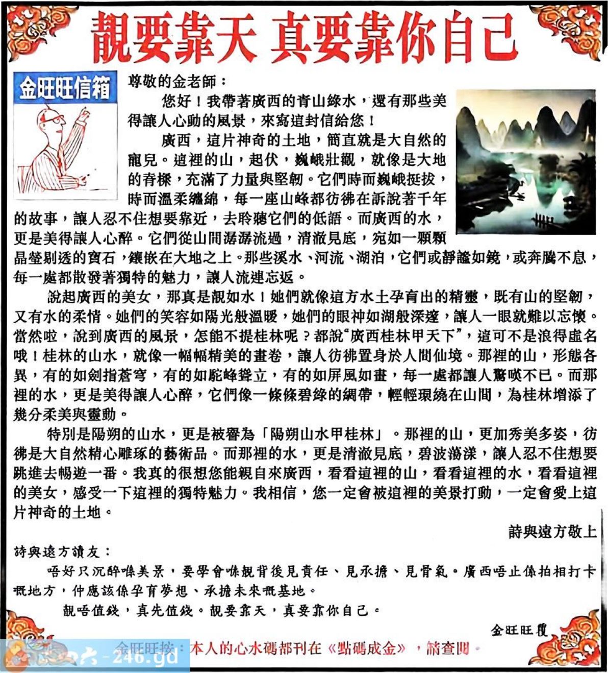 六合彩109期:金旺旺信箱彩民推荐→→《靚要靠天 真要靠你自己》