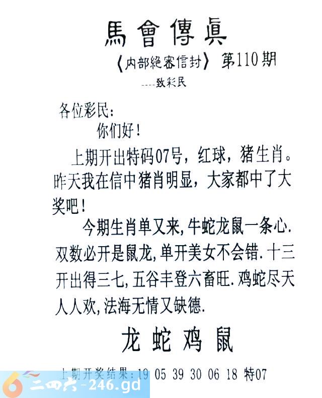 六合彩110期:首发推荐:≮馬會傳眞≯→(香港正版)