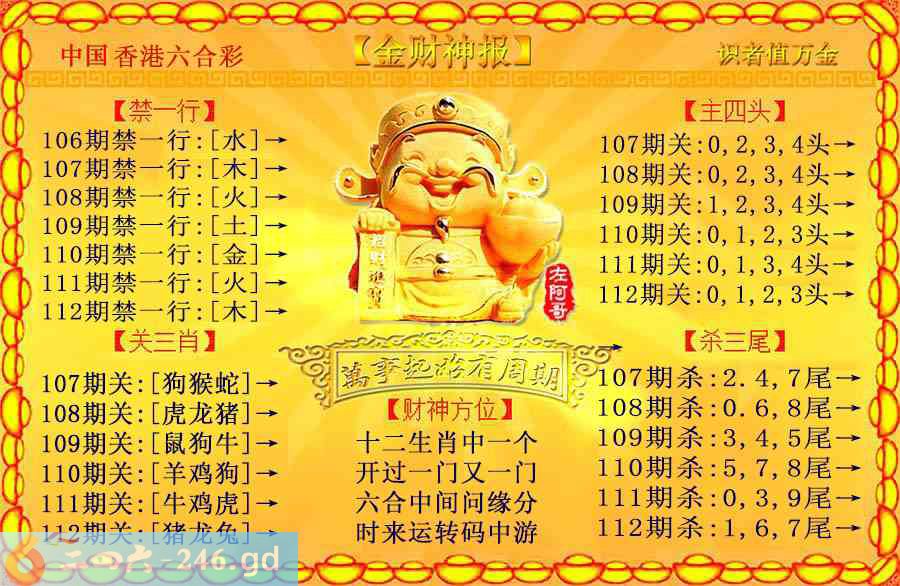 六合彩112期:金色财神