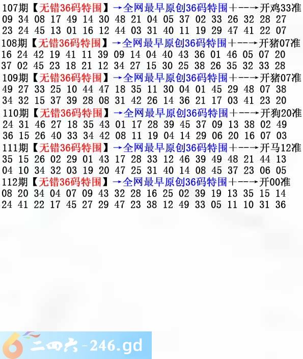 六合彩112期:无错36码