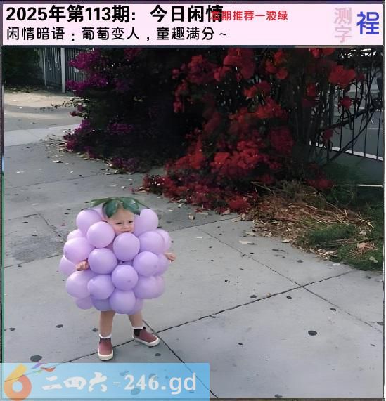 六合彩113期今日闲情②:葡萄变人,童趣满分~测字:裎