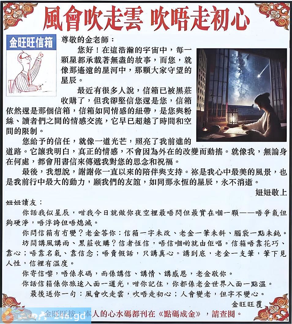 六合彩115期:金旺旺信箱彩民推荐→→《風會吹走雲 吹唔走初心》