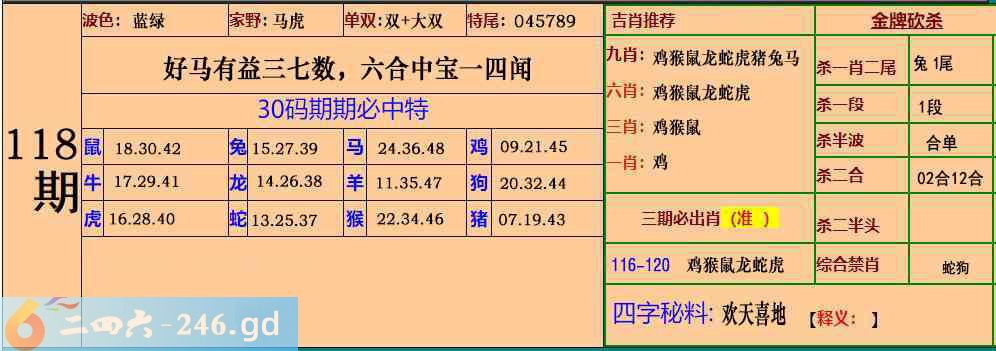 六合彩118期:30码期期特