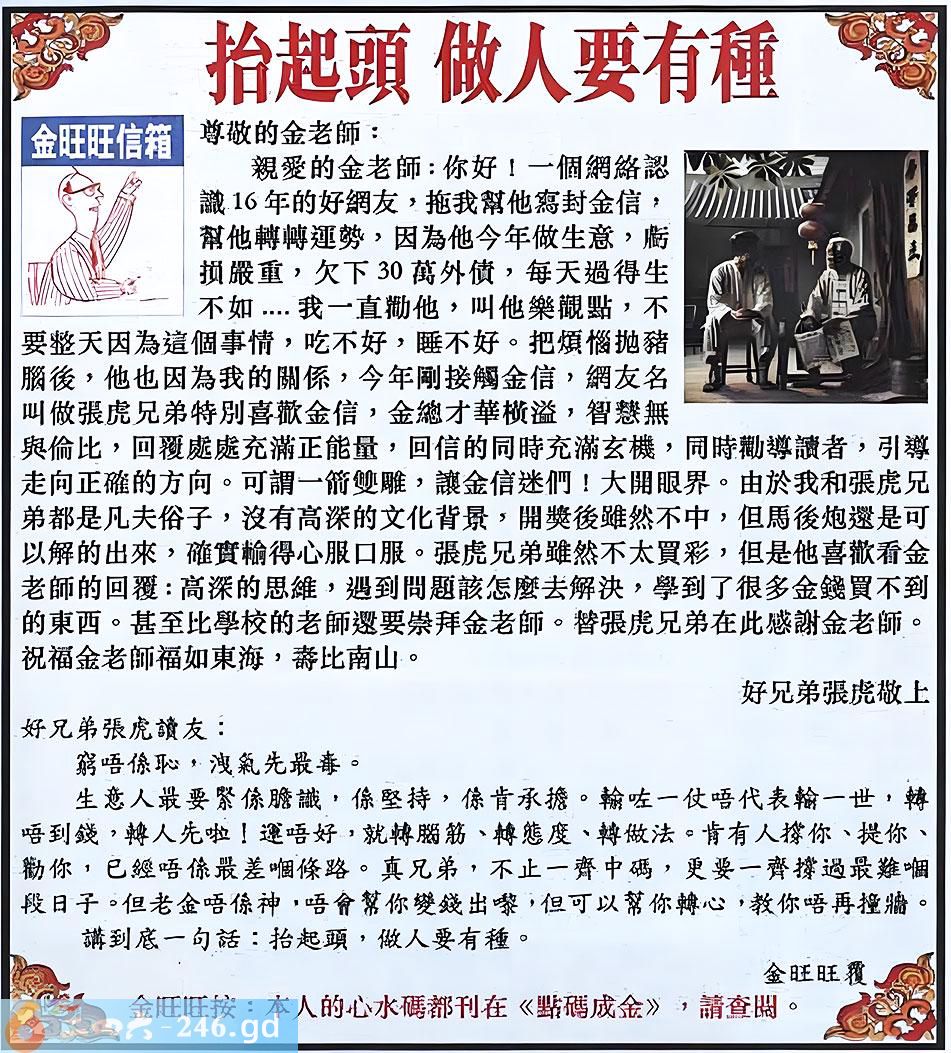 六合彩120期:金旺旺信箱彩民推荐→→《抬起頭 做人要有種》