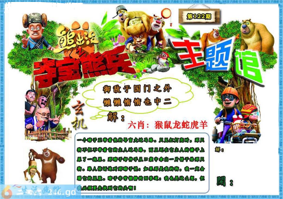 六合彩122期:熊出没生活幽默