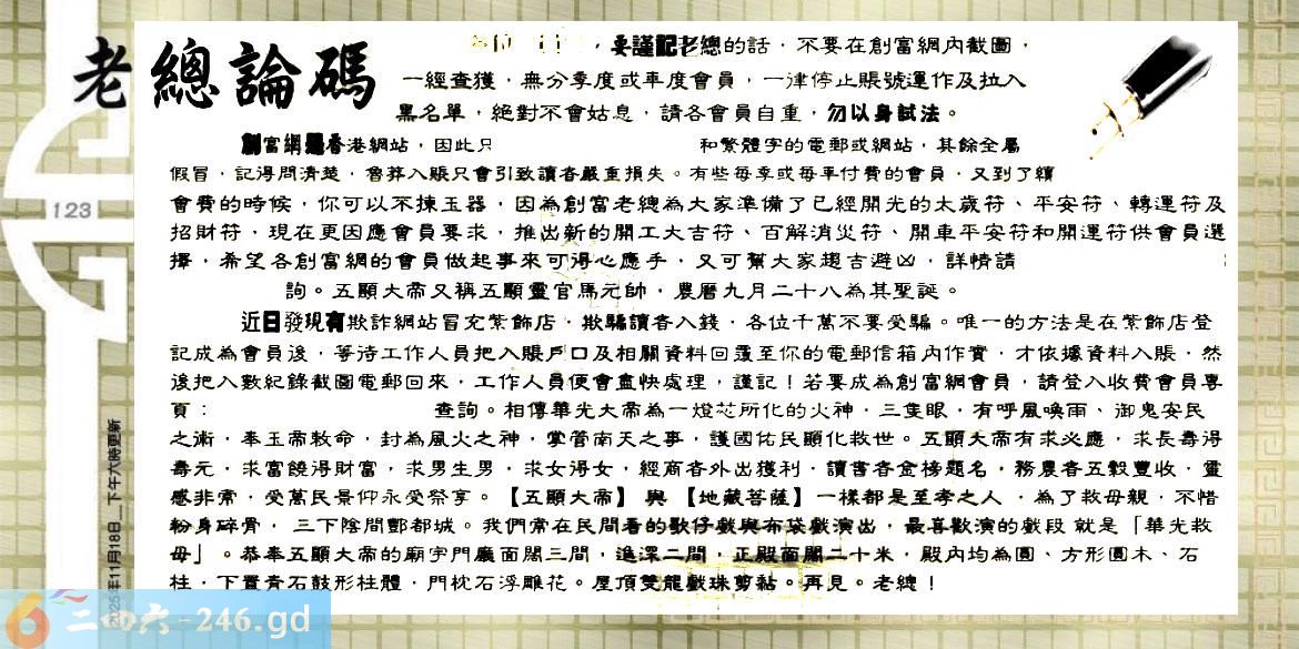 六合彩123期:六合皇金句/老总论码/萧公子/林大师/五行夺码/老总信箱截图