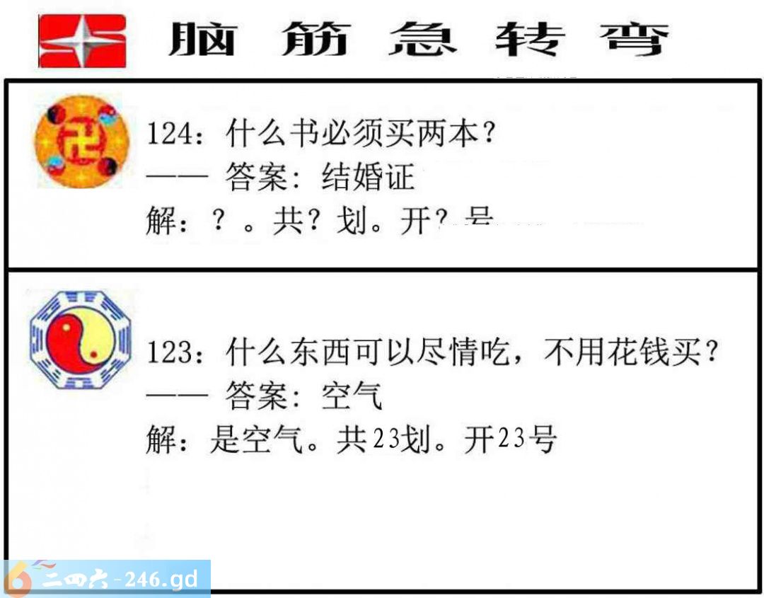 六合彩124期:脑筋急转弯