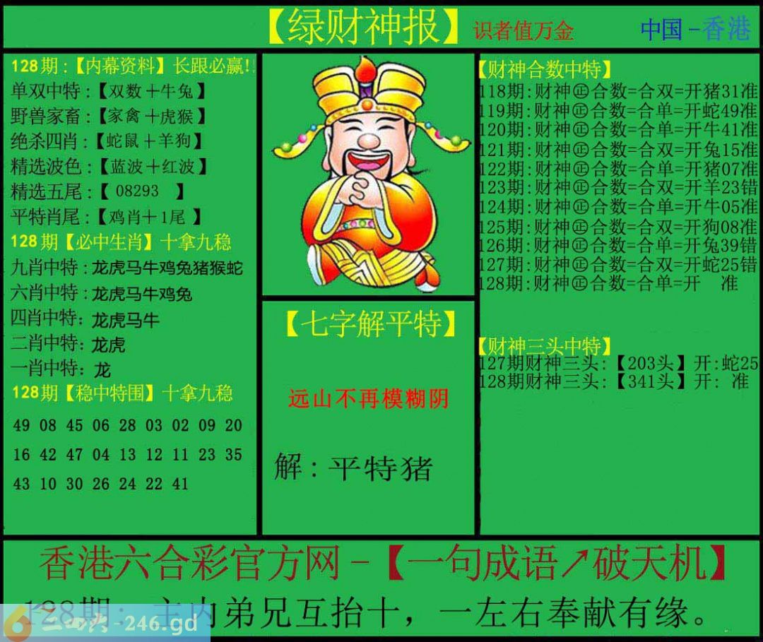 六合彩128期:绿色财神