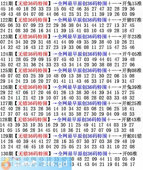 六合彩130期:无错36码