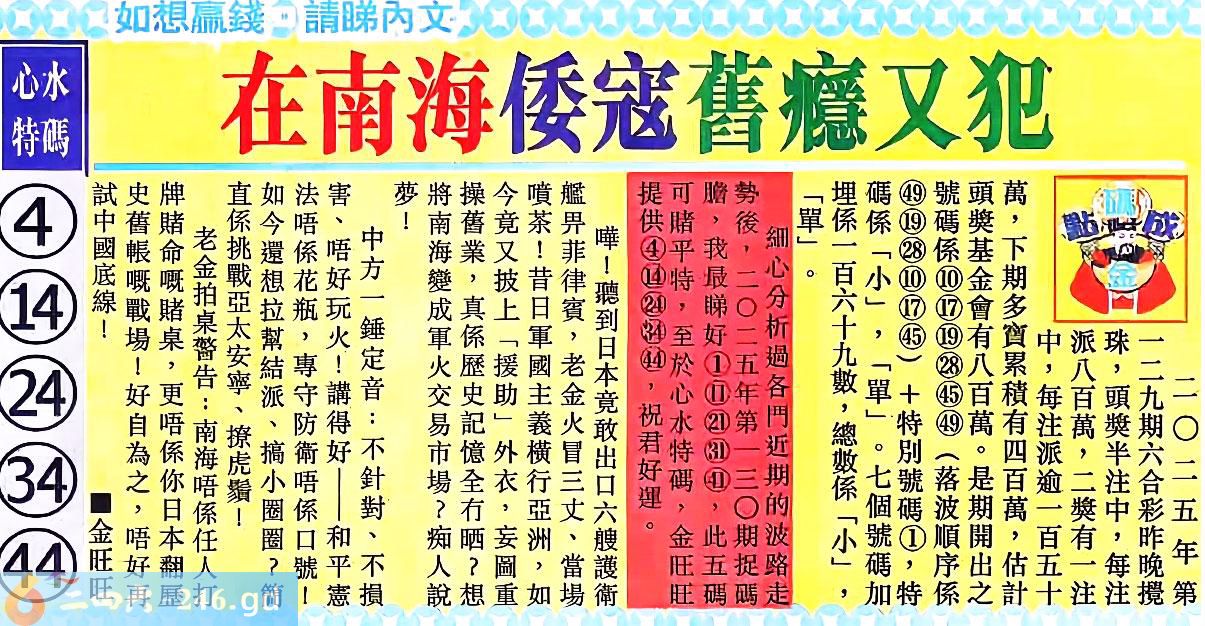 六合彩130期蓝天报(绝杀王)