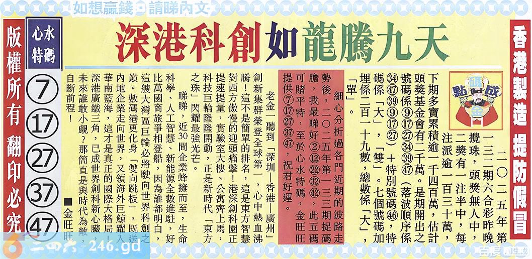 六合彩133期新报跑狗-2(背面)