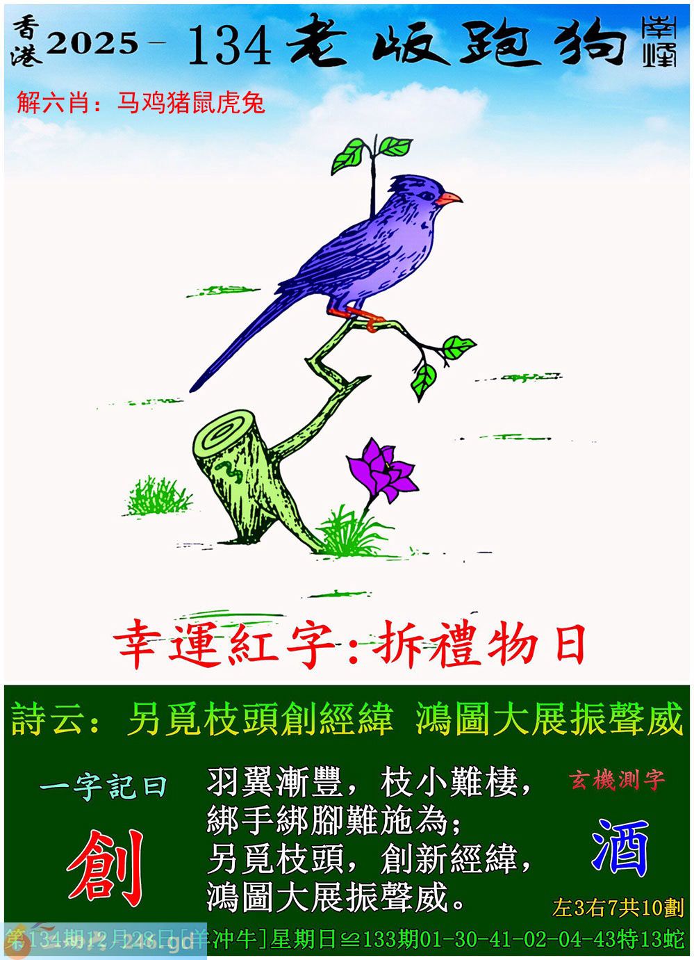 六合彩134期财神报
