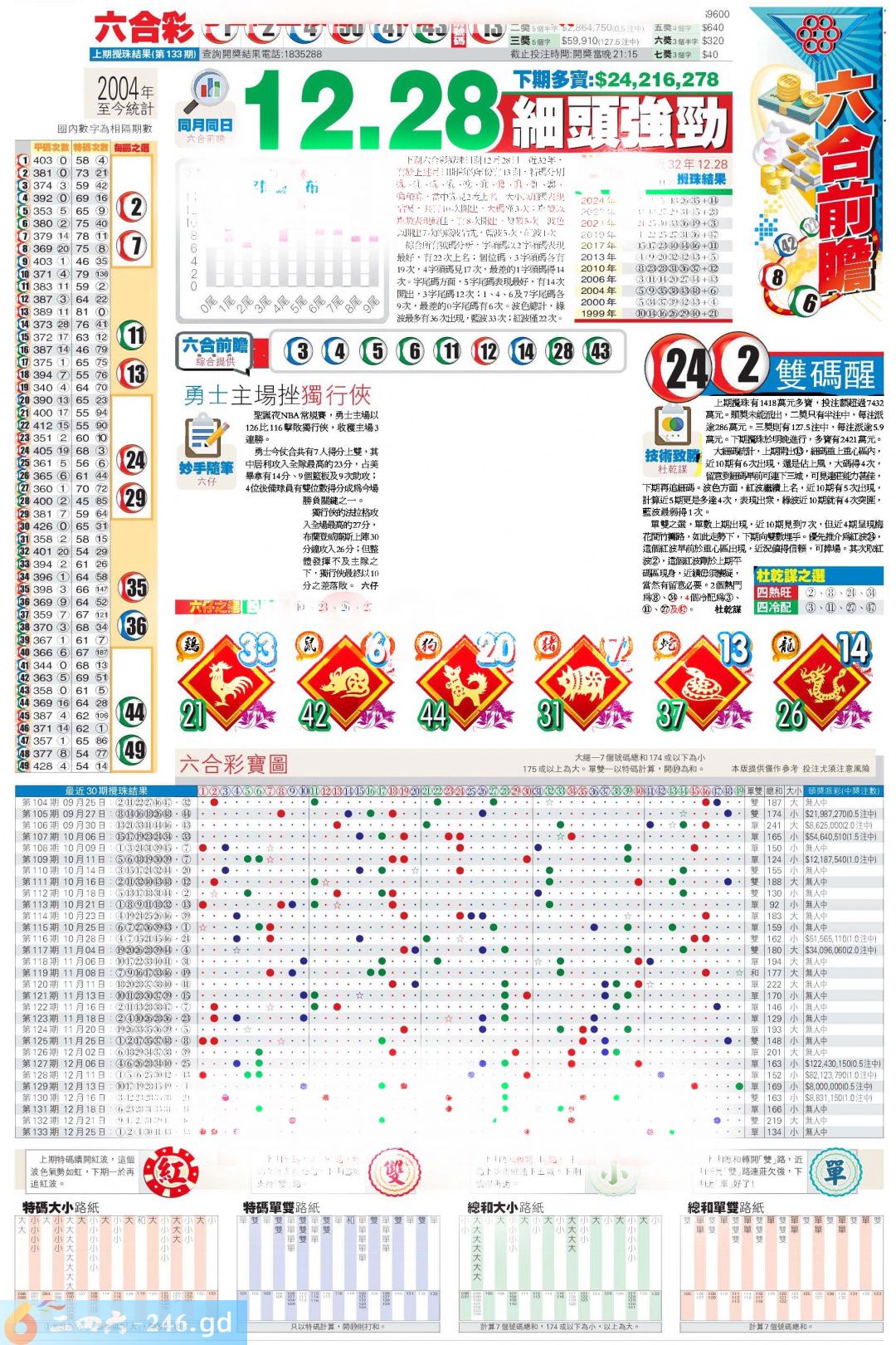 六合彩134期MarkSix金版双烧