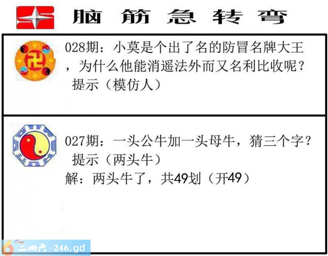 六合彩028期:脑筋急转弯