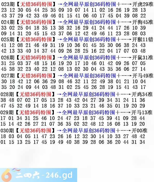 六合彩030期:无错36码