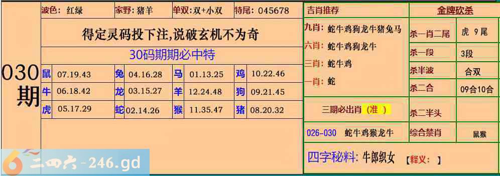 六合彩030期:30码期期特