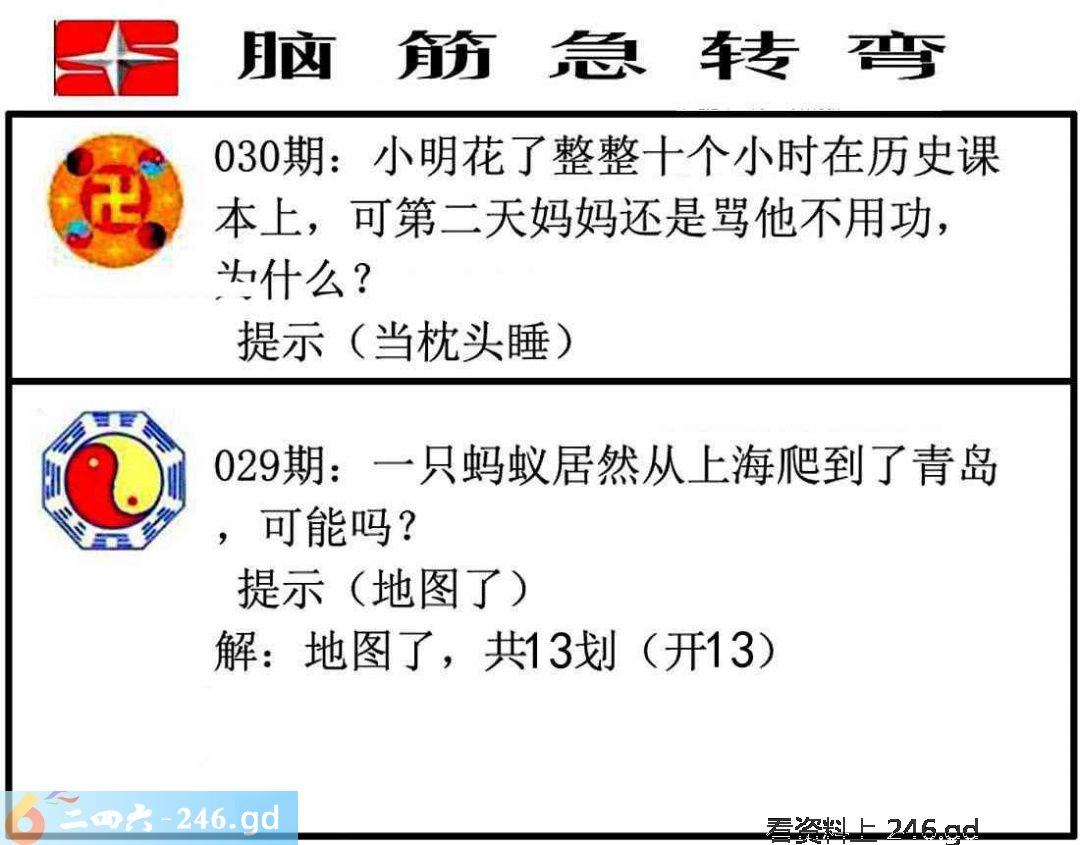 六合彩030期:脑筋急转弯
