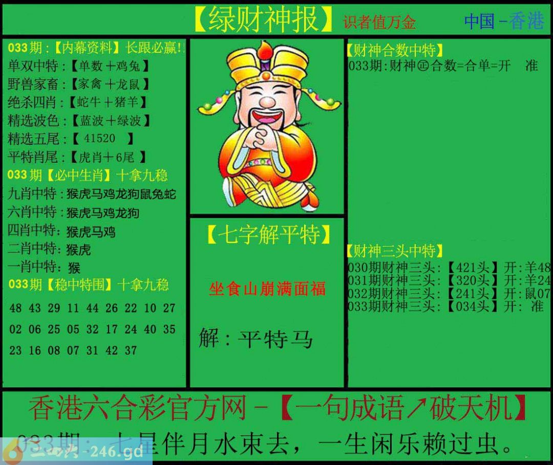 六合彩033期:绿色财神