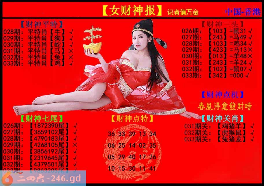 六合彩033期:女财神