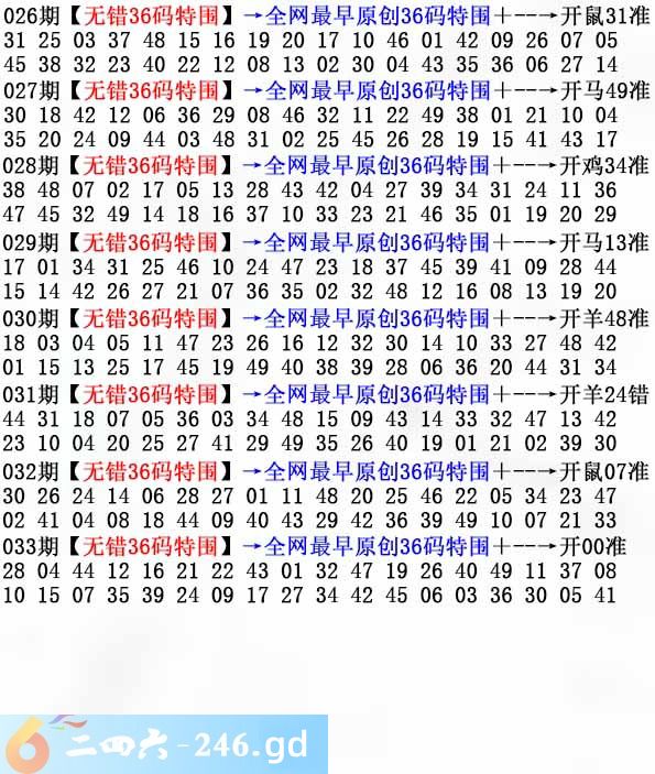 六合彩033期:无错36码