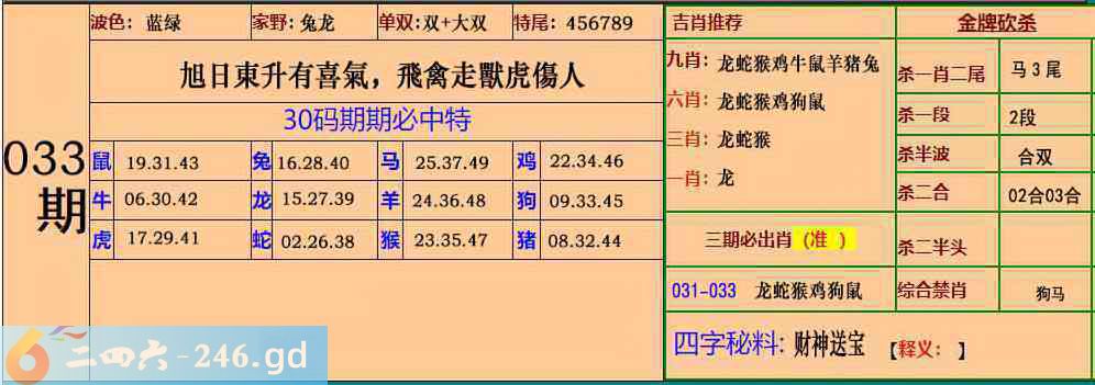 六合彩033期:30码期期特